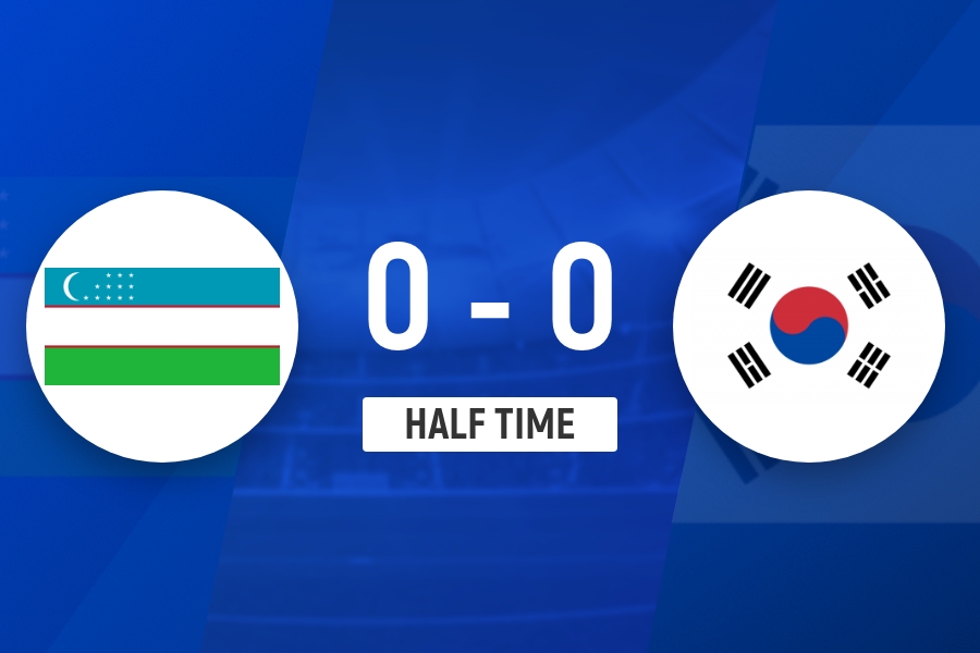 半场战罢,韩国U23队0-0乌兹别克斯坦U23队。